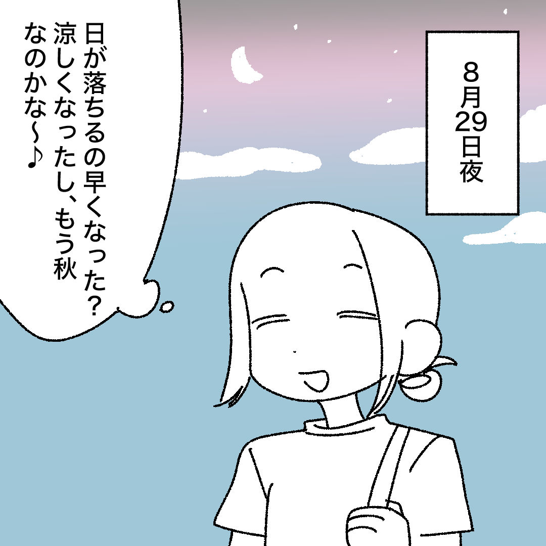 【日記】秋を感じてたのに⁉️2025.08.30日常日常 8月君?!最後の足掻きですか…?! 17 コメントはこちら 同じカテゴリの記事 【日記】新シリーズ書いてます! 【日記】無印のアロマキャンドル 【日記】桜咲くよ 白桃フラペチーノ! 【日記】もう少し続きます…! 乳がんステージ4手術を受ける話【123】 雪降ってる?!?! 【日記】フィットボクシング再開しました!!! 【日記】キャロットケーキおいしい🥕 【日記】ボーイフレンド2観てる人いますか!!! 【日記】遅めの初詣! 【日記】明日からまたよろしくお願いします! 【日記】おもちの食べ方色々! 【日記】福袋ゲット!!! あけましておめでとうございます!2026年! 【日記】2025年お世話になりました! ウーマンカレンダー様に漫画を掲載していただきました! 【日記】仕事納めました!!! 【日記】ゴンチャのあまおうティーエード! 【日記】ONŪMORE(オンユーモア)様からサプライズプレゼント! 【日記】とやまソフトセンター 【日記】アドベントカレンダー✨ 【日記】クリスマスシーズンに観たい映画! 【日記】ラルム君へ、ありがとう 【日記】ブラックフライデー! 【日記】トマト缶大好き 【日記】1人の時間もやっぱ好き 【日記】ハズビンホテルおもしろい! 【日記】純喫茶行きました 【日記】呪術廻戦観に行った! 【日記】グミサプリを買ってみた! 【日記】アイスを買いに夜のコンビニまで散歩 【日記】ヘルペス噛んだっ!!! 【日記】おでん解禁★ 【日記】インドカレー屋に行ってエモくなるマコモ 【日記】11月だと・・・!?!? 【日記】ポケモンZAおもしろそ〜!? 【日記】Switch2キターーーッ!!! TRILL漫画『毎日漫画賞』受賞しました! 【日記】CTの結果…!!! 【日記】手相見てもらった! 【日記】サイレントヒルFおもしろい 【日記】ストロープワッフル🧇おいしい~ 【日記】豊洲市場でナポリタンと梅ジュース 【日記】かゆい・・・かゆすぎる・・・! 【日記】図らずも全身ポムポムプリンになって草 【日記】BOYFRIENDを妹と鑑賞したら・・・ 乳がんステージ4手術を受ける話【33】 取材うけました!!! 【日記】INFJの頭の中 【日記】かわいい子と目が合って幸 乳がんステージ4手術を受ける話【28】 【日記】31のポッピングミルキー! 【日記】地元の味! 【日記】プチ観光! 【日記】ツイてない日をリベンジ!! 【日記】とことんツイてない日 【日記】前髪カーラーチャリ爆速JK 【日記】秋を感じてたのに⁉️ 【日記】和梨にシャインマスカット! 【日記】秋めいてきた・・・? 【日記】終わらないで夏休み 【日記】炊飯器でパンケーキ 【日記】おさんぽパピコ 【日記】夏と言えば・・・? 【日記】好きな入浴剤 【日記】大人の夏休み!!! 【日記】オーブントースターゲット! 【日記】CTの結果・・・! 【日記】過去と他人は変えられないけど、自分と未来は・・・? 【日記】机の脚に小指思いっきりぶつけた 【日記】生春巻きパーティー★ 【日記】こんなに曲がらない人久しぶりに見た…と先生に言われてしまった 【日記】負けるたび妹に筋トレをしてもらう企画 【日記】リロ&スティッチ観た!!! 【日記】久しぶりの自炊…! 【日記】塩分チャージの季節 【日記】ゼスプリのキウイってかわいいよね 【日記】久しぶりに靴を買った! 【日記】うねうね…てかてか…じとじとの季節… 【日記】当たり前の日常、ありがとう!!! 【日記】サーティワン!よくばりフェス! 【日記】風邪引きました 【日記】気圧しんどい・・・! 【日記】冷凍庫にしまい忘れたアイスクリームの末路 【日記】2025年5月 CTの結果! 【日記】カルディでしか得られない栄養がある 【日記】~ホットフラッシュは突然に~ 【日記】通院帰りに温泉! 【日記】インサイドヘッド観た! 【日記】ついつい見てしまうメイク動画 【日記】河内晩柑10キロ! 【日記】ミッフィー展で涙 【日記】台湾式朝ごはん!~5時起きチャレンジ~ 【日記】「・・・とは限らない」を後ろにつける 【日記】プレゼントの選び方 【日記】ゴールデンウィークだー! 【日記】もうすぐゴールデンウイーク! 【日記】Switch2・・・! 【日記】パワパフ1番くじ! 【日記】朝食をグレードアップしてみた 【日記】一日中ゲームしてた 【日記】”普通”とは? 【日記】人生初めてのCoCo壱 【日記】人生は・・・〇〇〇〇ごっこ! 【日記】不器用なファミリーによる静かなお茶会 【日記】最近ゆるゆると初めてみてること 【日記】犬と触れ合いたい 【日記】花粉に雪に・・・季節の変わり目に振り回される 【日記】”世界の終わり”ってどんな香り!? 【日記】シャインマスカットみたいなあいつ 【日記】ストレスも脂肪も燃焼ダンス! 【日記】長めの散歩~アイスコーヒーうま~~~ 【日記】110円のケーキの誘惑 【日記】あつまれ!宗教の森!~教祖になれるゲーム~ 【日記】疲れた心と体に沁みるコンビニおでん 【日記】突然のど忘れ 【日記】ハッピーバレンタイン 好きなチョコレート♡アンケート 【日記】2月の定期通院 【日記】オリゴのおかげミルクティー 前の記事 乳がんステージ4手術を受ける